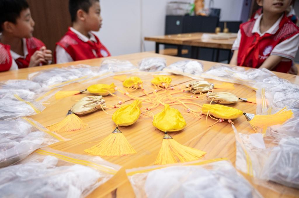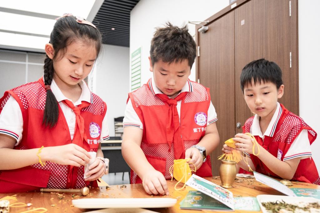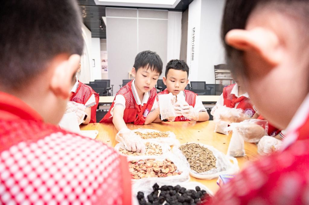 7月18日,浙江中医药大学附属钱江湾小学紫丁香中队的小学生来到浙江中医药博物馆参加了 “小小中药师研学营”活动,孩子们亲手参加了DIY中药香囊、乌梅饮茶包制作等环节,寓教于乐,孩子们不仅参观了中医药文化的殿堂,更亲手完成了特色中药实践活动。