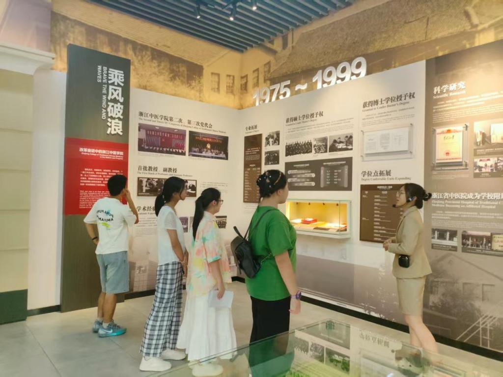 社会实践的首日,来自浙江中医药博物馆的社会实践指导老师为同学们开展了讲解内容培训,带领同学们实地讲解浙江中医药博物馆,帮助同学们熟悉场馆布局。在讲解内容培训时,指导老师示范讲解了浙江中医药博物馆全部场馆内容,耐心细致地解答同学们提出的问题,并深入浅出地讲解了药方的精妙组合、穴位的精准定位等丰富知识。