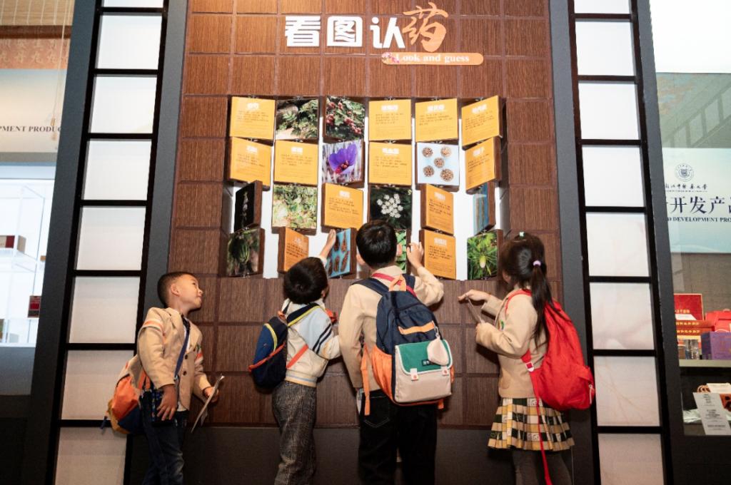 进入博物馆展厅,孩子们被整齐陈列的中草药标本深深吸引。讲解员用生动语言介绍了每种标本的名称和功效。孩子们一边听讲,一边在博物馆寻宝地图上贴上贴纸,互动中逐步了解中医药的悠久历史与神奇功效。