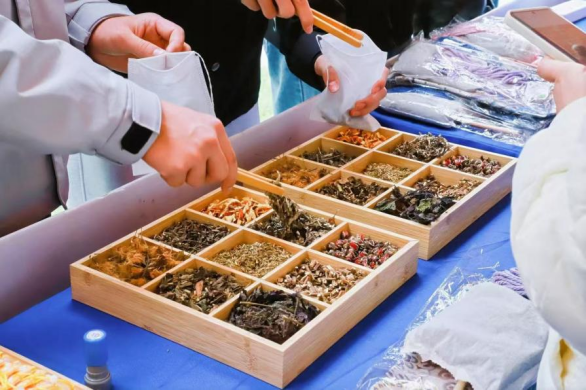 科普市集中,浙江中医药博物馆以互动体验与中医药文化传承为核心,设置了中药香囊手工制作、艾草锤制作互动活动,科普了生活中常见药食同源中药、经络与穴位等中医药相关内容,吸引了大量市民驻足参与,现场气氛热烈,互动踊跃。